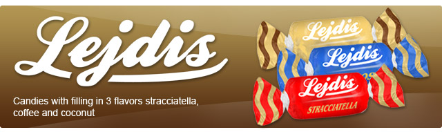 Candies with filling in 3 flavors stracciatella, coffe and coconut