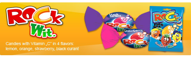 Candies with Vitamin „C” in 4 flavors: lemon, orange, strawberry, black curant